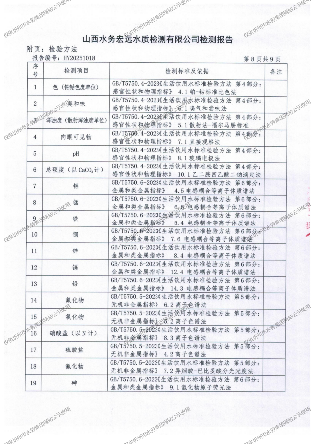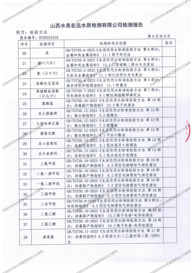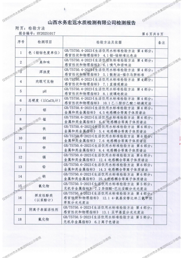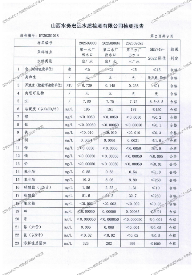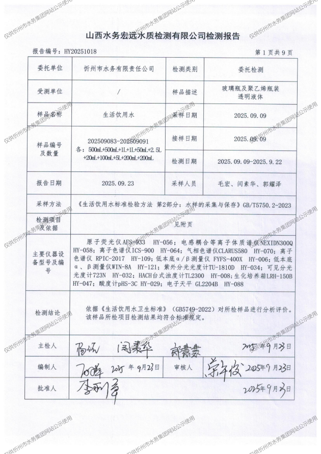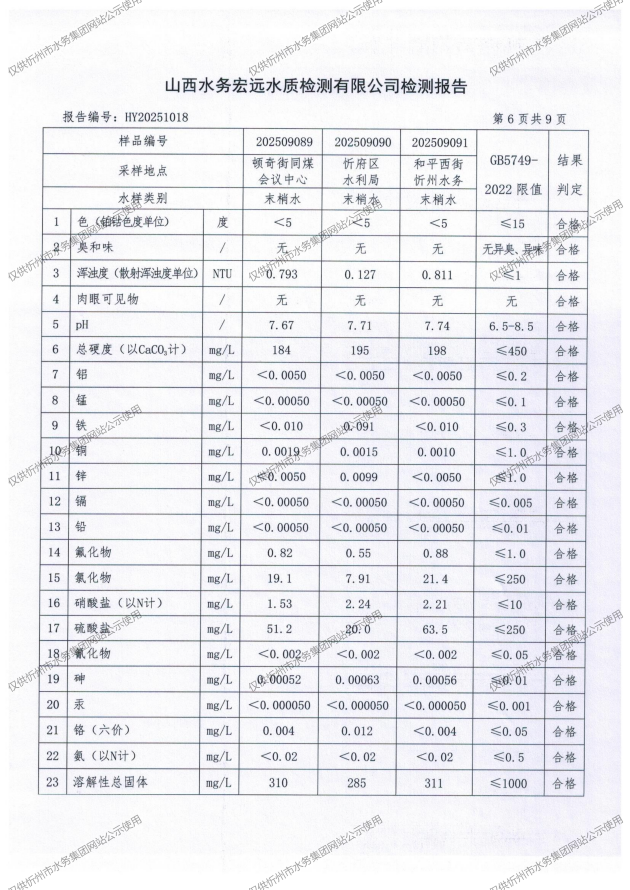 忻州城區(qū)公共供水水源水、出廠水、管網(wǎng)水、管網(wǎng)末梢水2025年9月份水質(zhì)信息公示